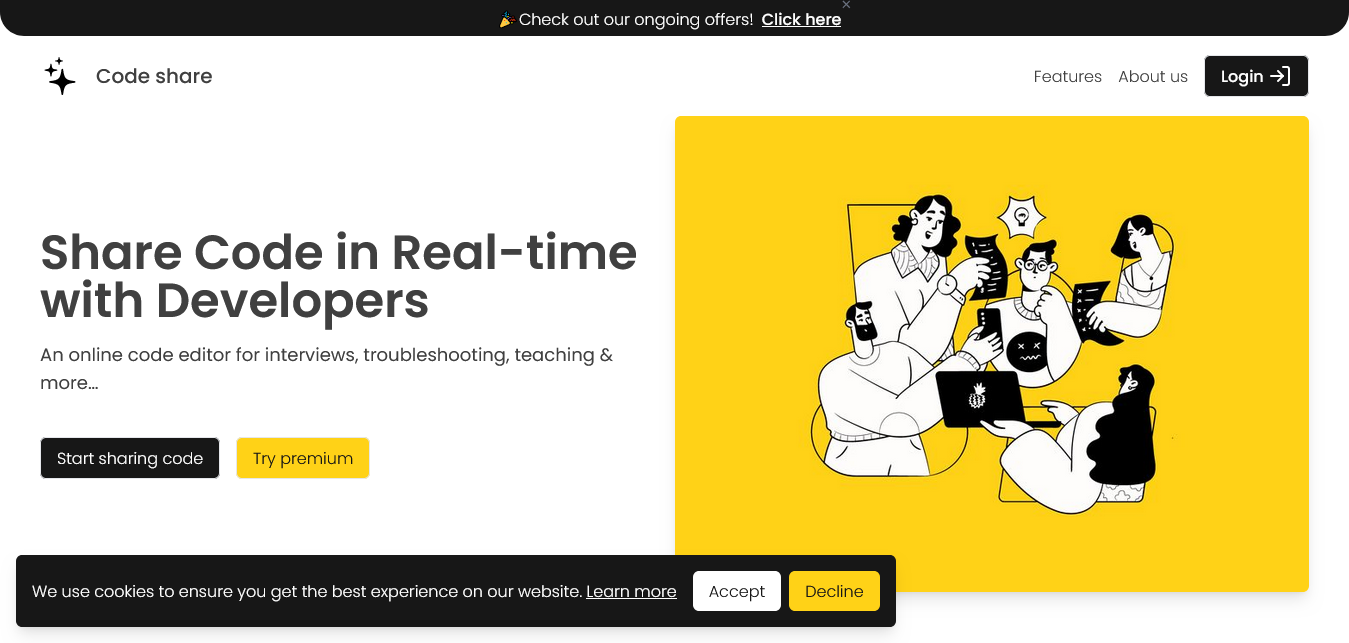 A real-time code-sharing application that lets users create and join rooms for collaborative coding.